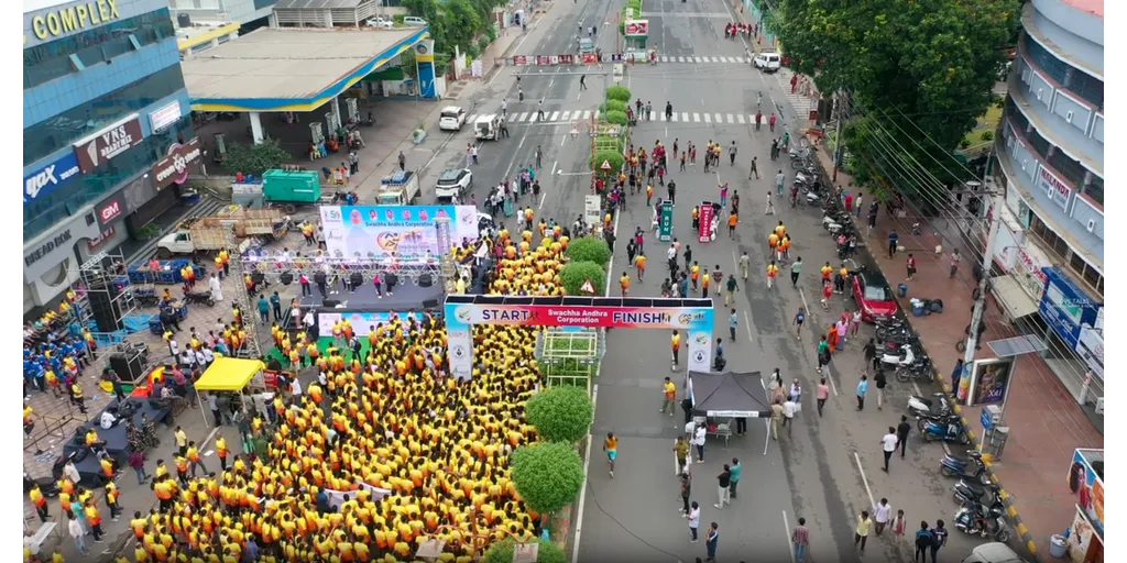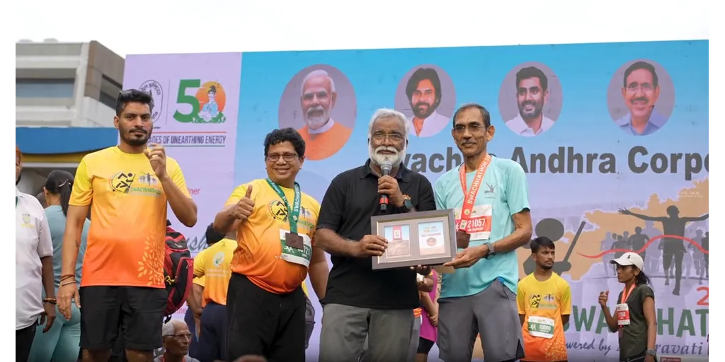 Swachhathon City Run in Vijayawada, A.P was held on 2nd October 2025. More than 5000 people participated. The half marathon was flagged by TDP Leader Sri K. Pattabhi Ram.
